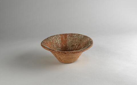 Coupe à paroi évasée, terre cuite orangée, décor de quatre zones trapézoïdales peintes de croisillons à l’intérieur du vase. Nagada (?), Égypte. Époque de Nagada I. Achat coll. Rustafjaell, 1909.
